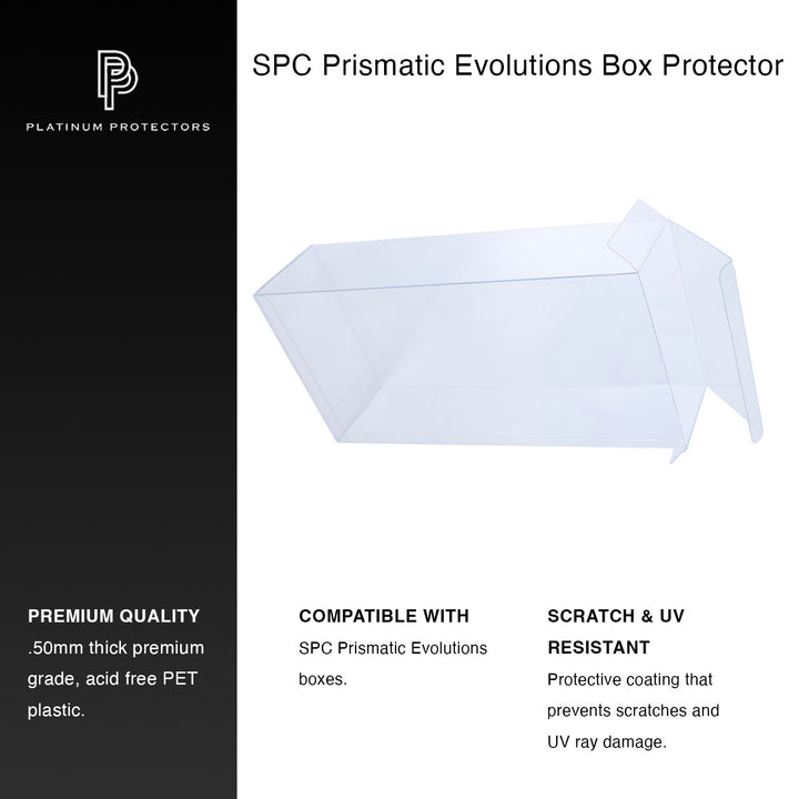 - FITS: Specifically designed for the SPC Prismatic Evolutions box. Note: Not compatible with Sword & Shield Charizard UPC, 151 UPC or Ultra Premium 25th Anniversary Celebration boxes. Please verify dimensions before ordering.